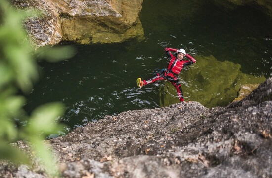 Ziemlich beeindruckend, so eine Tour mit dem Chef von Canyoning-Salzkammergut. – Er weiß eben, wie es geht! Wenn der Helm sitzt, der Neopren anliegt und der Klettergurt sicher um die Hüften liegt, dann ist es soweit! Das Abenteuer durch den Almbach kann beginnen! Laura steht am Felsen, gemeinsam mit ihrer Familie ist sie hier auf Urlaub. Im Salzkammergut erwartet sie ein Tag in einer der schönsten Klammen des Landes. Laura ist aufgeregt. Unter ihren Füßen glitzert das Wasser. Ein bisschen zaghaft wagt sie sich an den Felsvorsprung heran und blickt hinab. Tief grün ist die Wasseroberfläche und bewegt sich sacht.